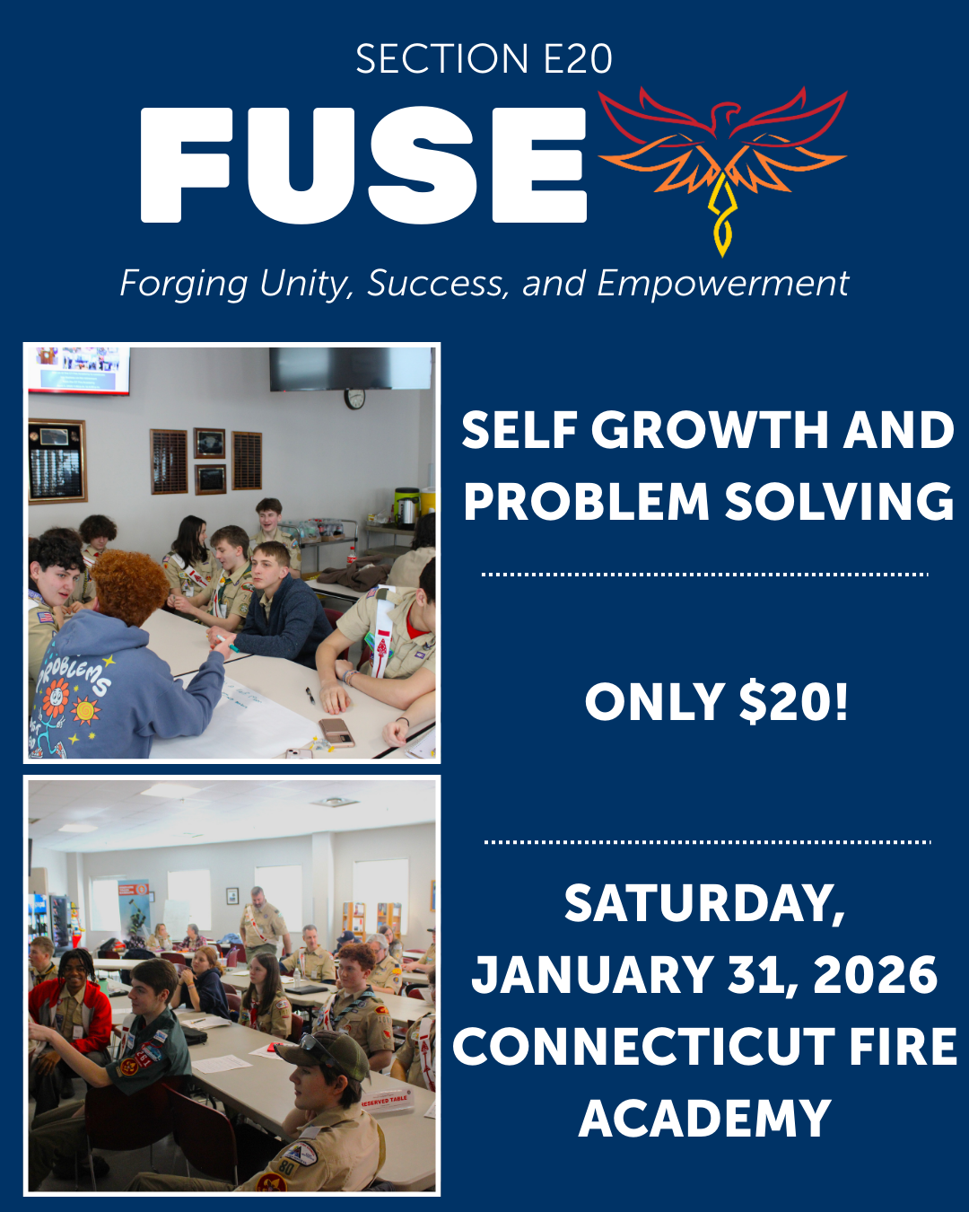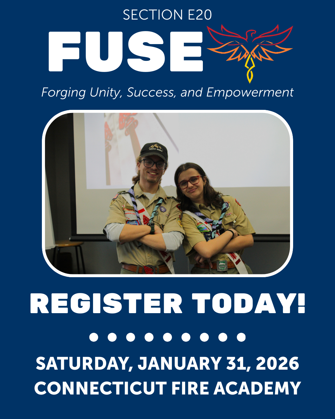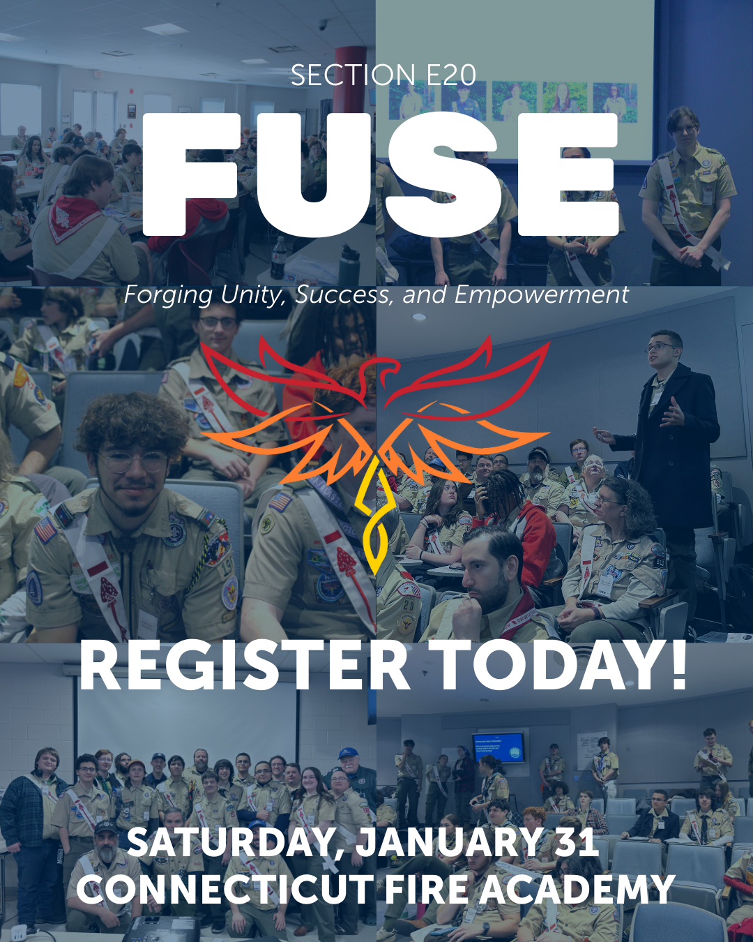 We want to see you and your fellow Arrowmen at the FUSE Training Summit on January 31st at the Connecticut Fire Academy! To help encourage registration, the Section Comms Team has put together a collection of promotional materials. Please find a variety of resources, including emails, newsletter articles, flyers, and more below: